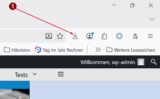 über das mit „1“ gekennzeichnete Symbol ist der „Download-Ordner“ zu erreichen. dazu bitte auf das Symbol klicken