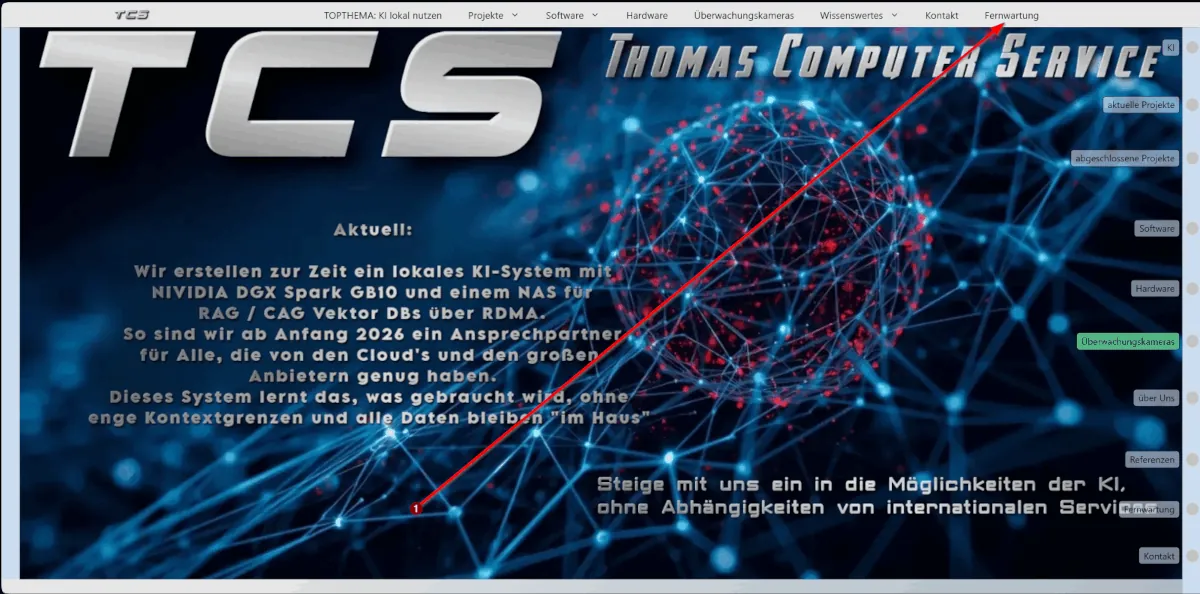 oder über die web-site den Punkt „Fernwartung“ klicken: